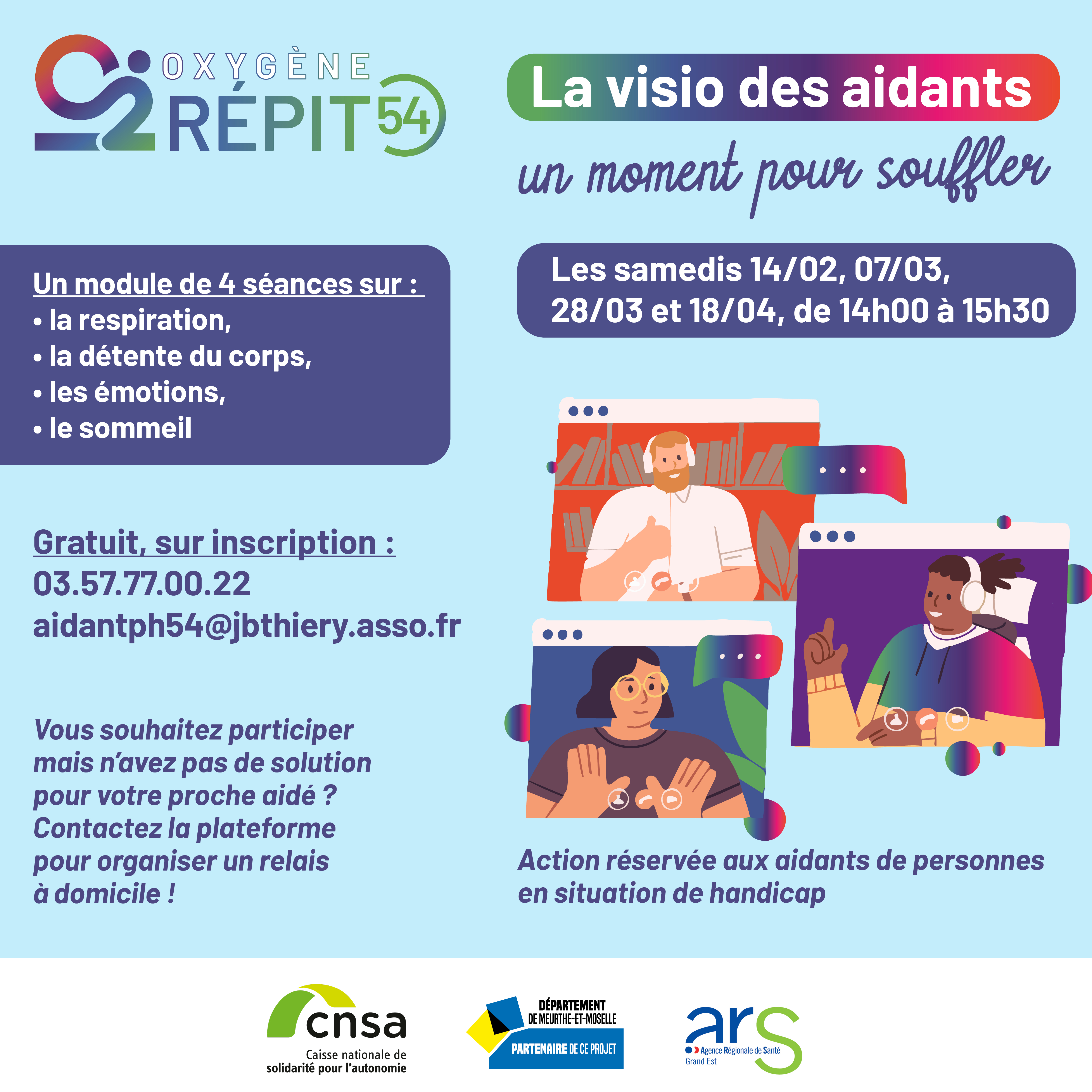 La Plateforme Oxygène Répit 54 vous propose un temps pour souffler, relâcher la pression et prendre soin de vous 👉 en visio !