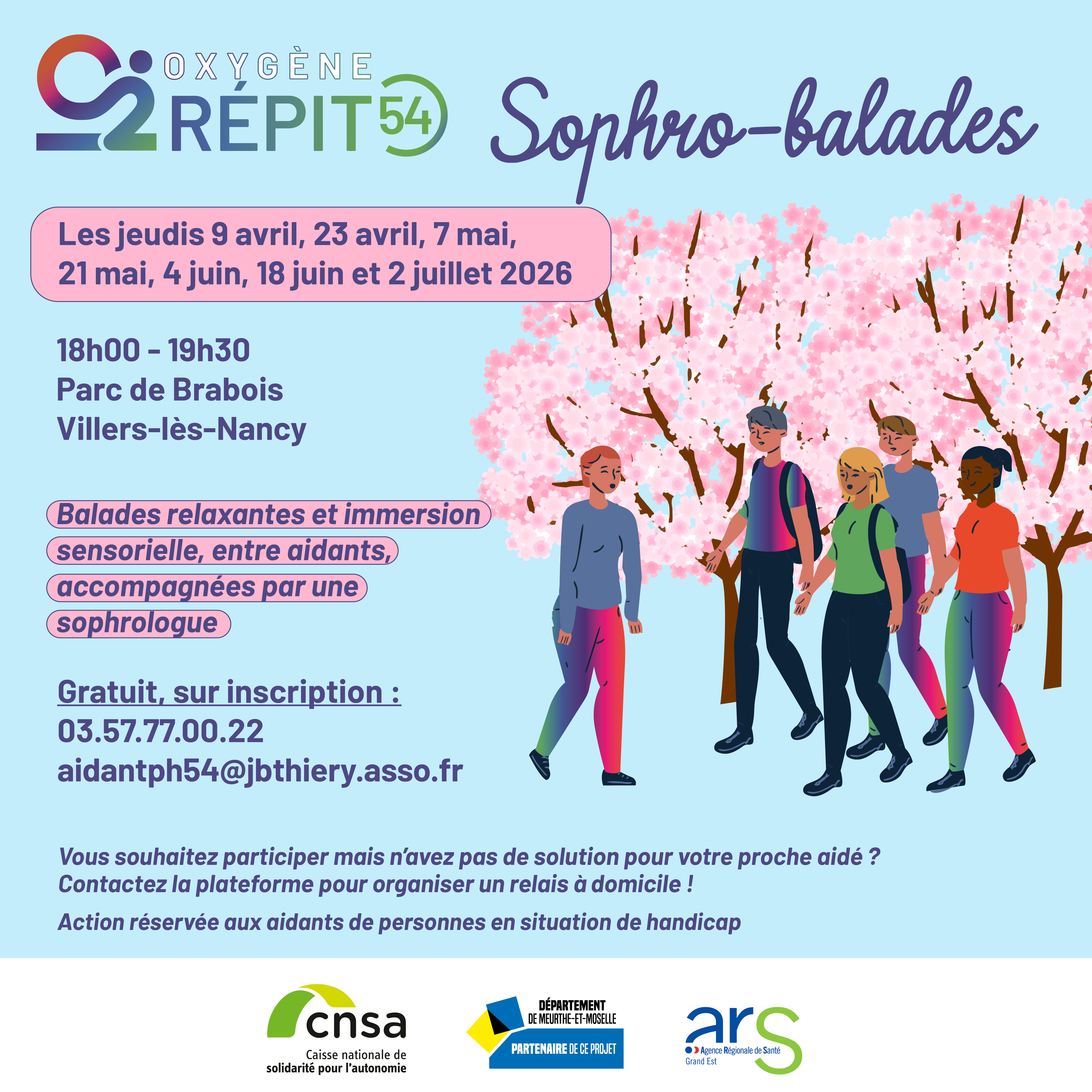 Inscrivez-vous pour partager une immersion sensorielle, un moment de répit entre aidants et une balade relaxante. 🌸